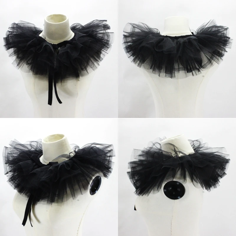 Women Victorian Ruffled Mesh Fake Collar Shawl Retro Layered Tulle Detachable Neck Ruff Decorative Clown Cosplay Choker