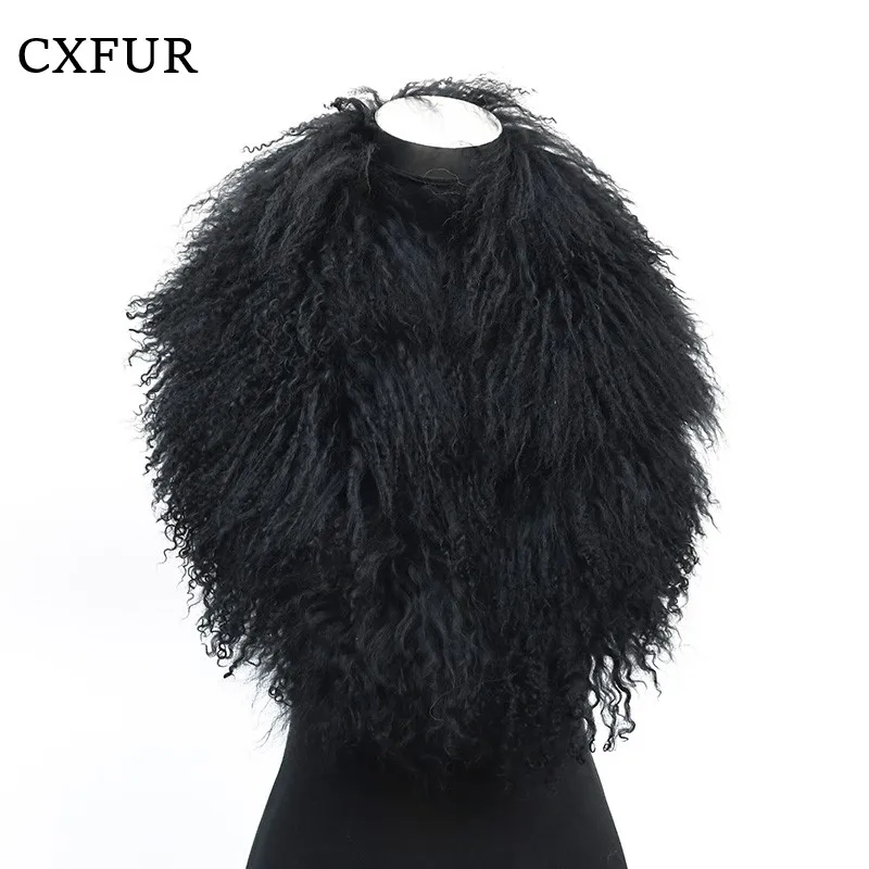 CX-A-52M Real Fur Scarf Detachable Mongolian Lamb Fur Collar Scarf for Women Garments