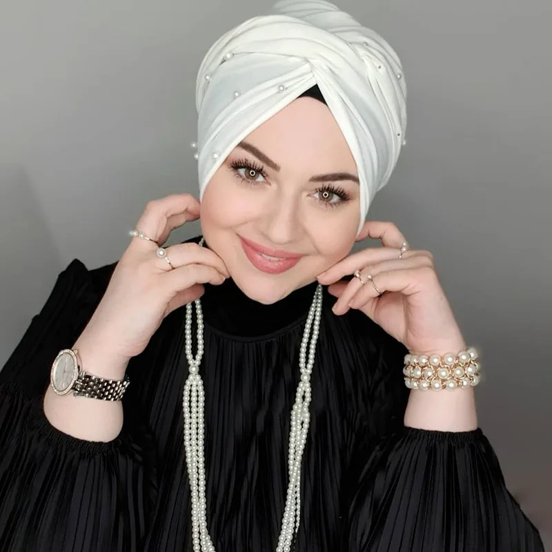 Muslim Pearl White Modal Hijab Fashion Undercap Abaya Hijabs For Woman Abayas Jersey Head Scarf Dress Women Turbans Turban Cap
