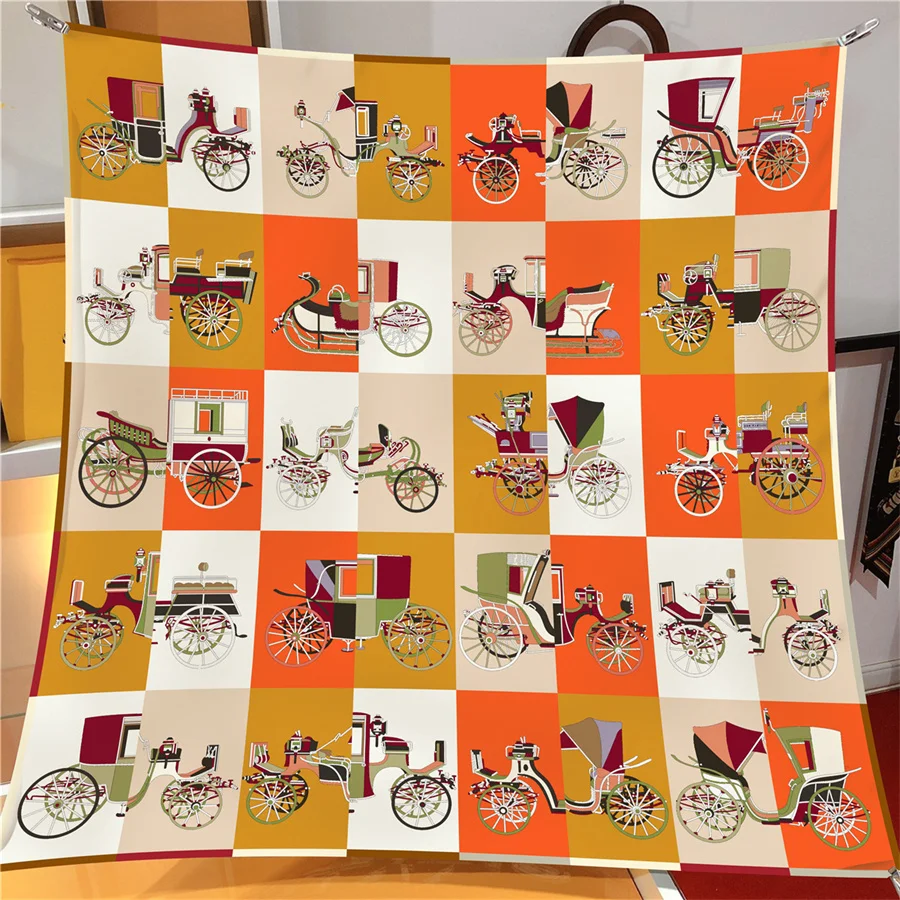 90CM Twill Silk Scarf Fashion Shawl Luxury Brand Grid Carriage Square Scarf Women Hijab Bandana Foulard Neckerchief Head Scarves