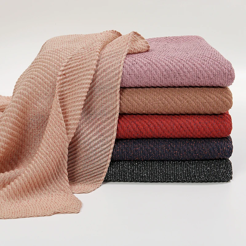 New Line Diagonal Crinkle Hijab Scarf Cotton Woman Muslim Hijab Shawls Solid High Quality Wraps Lady Headband Turban170*78cm