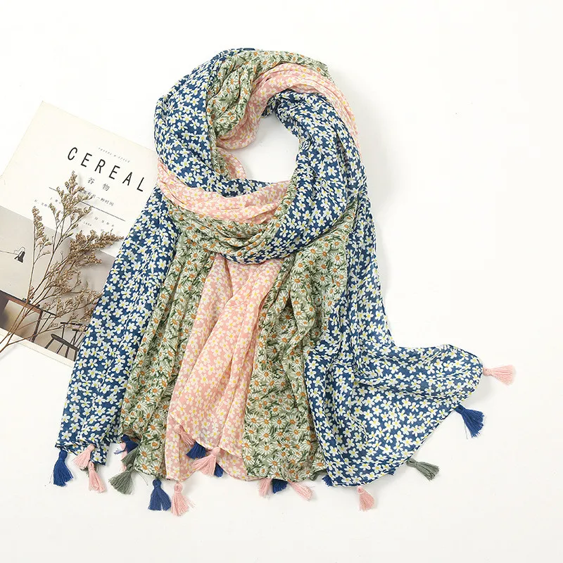 Printed Floral Cotton Tassel Scarf Viscose Shawls For Woman Summer Beach Long Muffler Fashion Muslim Headband 185*90cm