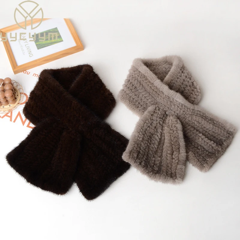 2025 Winter Authentic Mink Fur scarf Lady Warm 100%Natural Real Mink Fur Knitted Scarf Genuine Fur Scarfs Wholesale 90cmX13CM