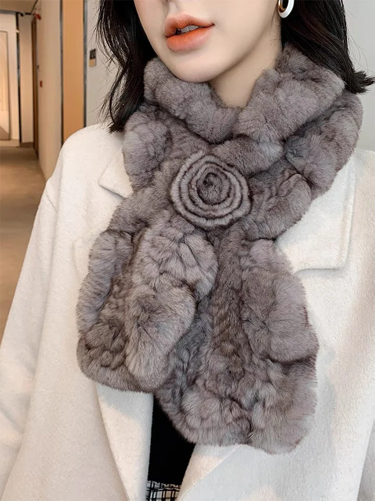 Female Winter Warm Real Rex Rabbit Fur Solid Color Scarf Fur Mom's Women Soft Real Fur Scarf