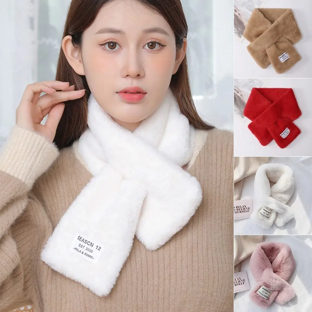 Korean Winter Faux Rabbit Fur Scarf Women Girls Scarf Soft Plush Scarves Solid Color Neck Collar Warmer Stuff Christma Gift