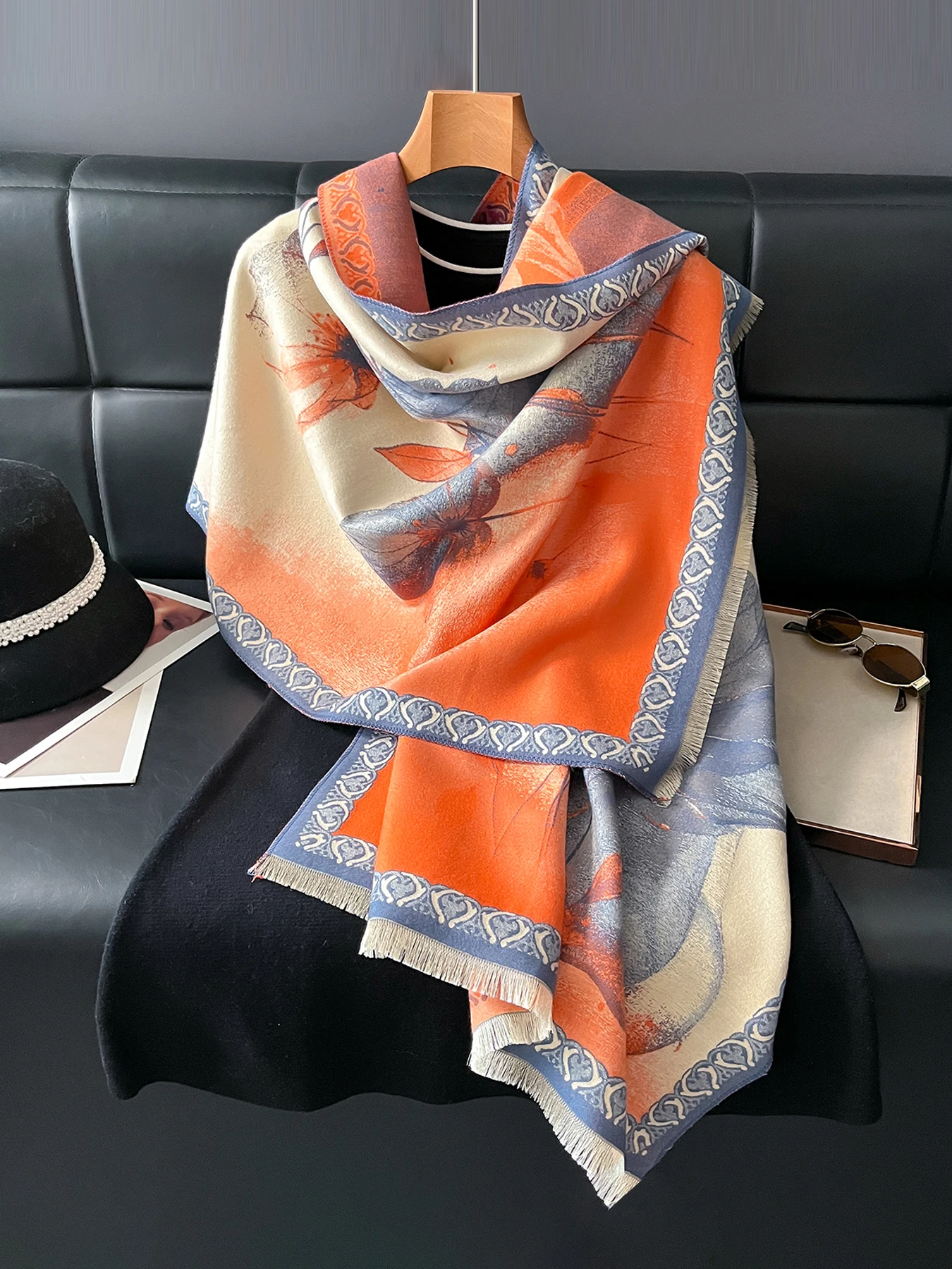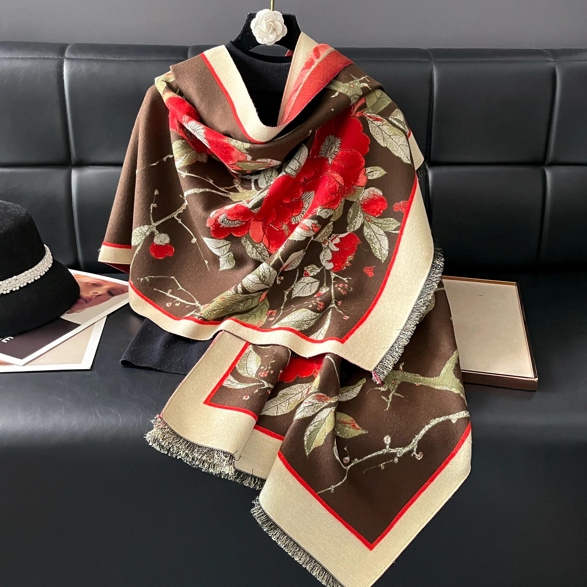 Thick Flower Print Pashmina-Style Shawl Scarf Wrap Poncho Echarpe Bandana for Women Fashionable Warm Wraparound Scarves