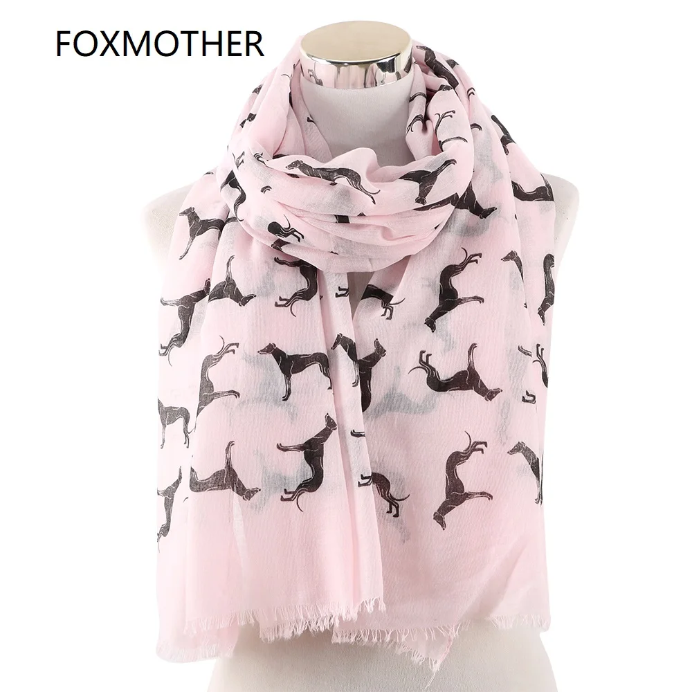 FOXMOTHER New Fashion Scarves Spring Summer Pink White Doberman Dog Animal Printed Scarf For Dog Lover Mom Gifts Dropshipping