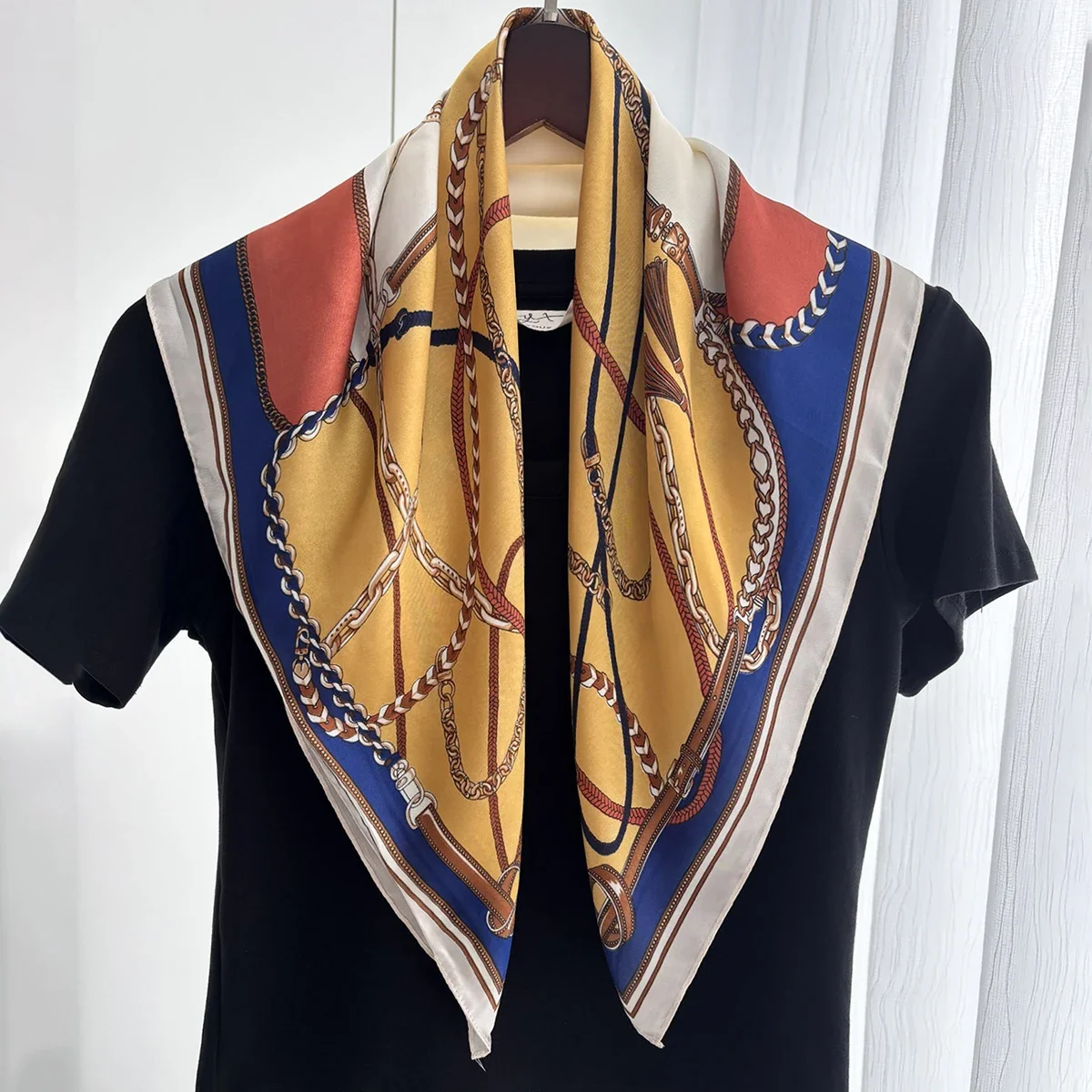 Luxury2024Square Silk Scarf for Women 90*90Hijab Hair Bands Neckerchief Female Satin Shawl Ribbon Headband Fashion Wraps