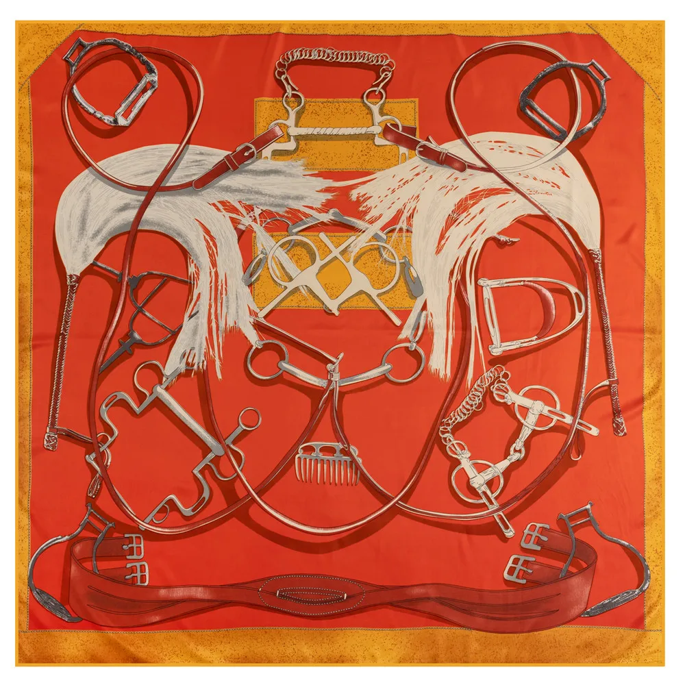 POBING Twill Silk Scarf Women Shawls Saddle Print Stoles Bandana Luxury Kerchief Hijab Square Scarves Wraps Silk Foulards 130CM