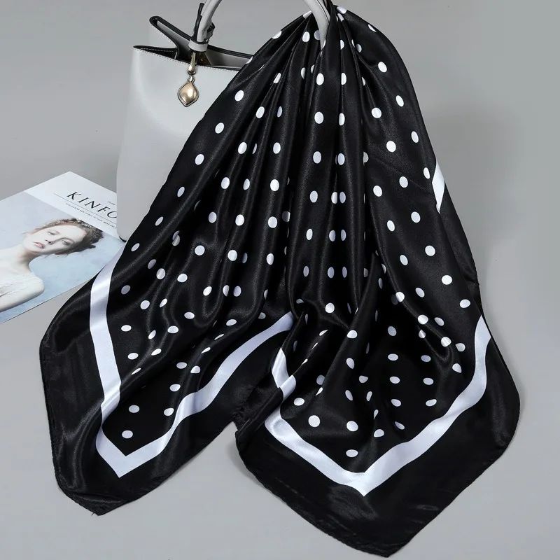 90cm Polka Dot Pattern Scarf for Women Spring Summer Thin Imitation Silk Twill Scarf for Fashionable and Versatile Turban Shawl