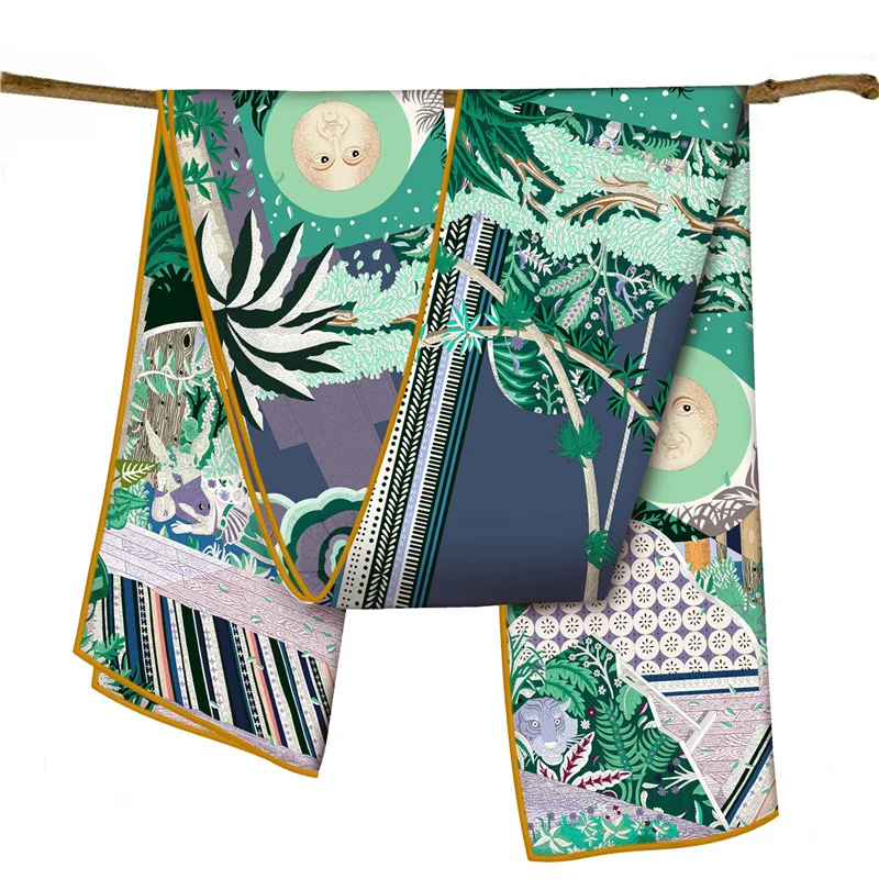 130Cm French New Secret Garden Plant Jungle Ladies Versatile Twill Shawl Large Square Scarf Fashion Trend Women