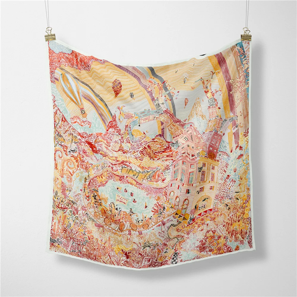 New Year's Gift Spring 90x90cm New Handmade Curled Edge Women's Twill Versatile Square Scarf Silk Scarf Sunscreen Shawl