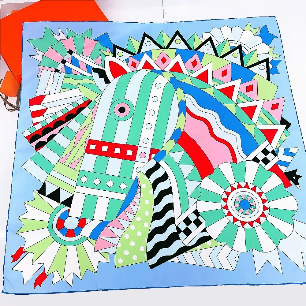 Brand Silk Scarves Horse Head Printed Twill Silk Scarf Women Shawls Luxury Design Hijab Fashion Square Curled Scarf Neckerchief