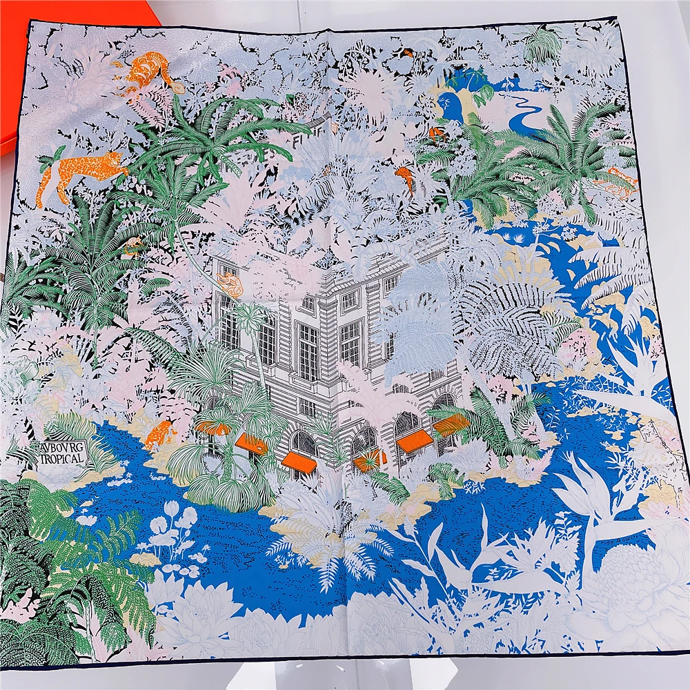 Manual Hand Rolled Twill Silk Scarf Women City Print Square Scarves Wraps Echarpe Silk Foulards Femme Bandana Lady Hijab 90CM