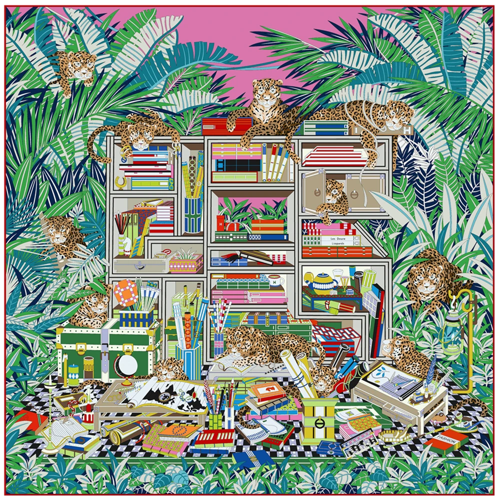90CM Brand Luxury Twill Silk Scarf for Women Leopard Jungle Library Wrap Headband Shawl Stoles Hijab Lady Square Foulard Bandana