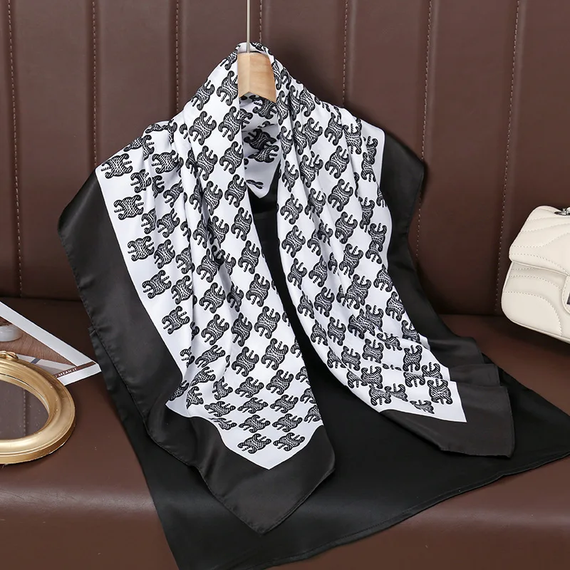 Design Luxury 90cm Twill Silk Women Scarf Sunscreen Foulard Shawl Hijab Female Hair Hijab Wraps Neckerchief Bandanda Echarpe