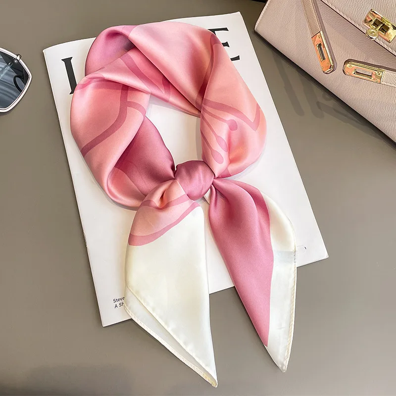 New Fashion Luxury Brand 70cm Silk Square Scarf Women Satin Shawl Wrap Hijab Echarpe Neck Tie Female Hair Bandana Headkerchief