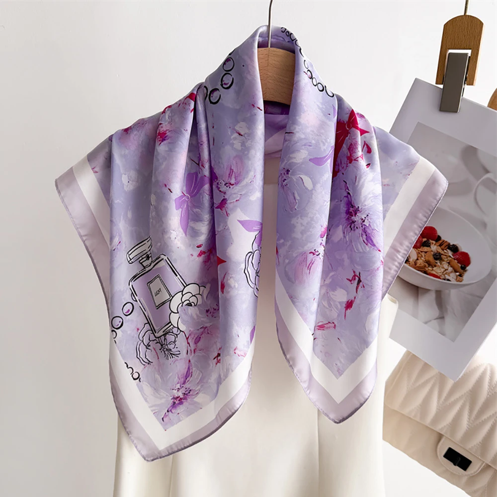 Luxury Floral Square Scarf Women Print Satin Neckerchief Spring Hair Band Foulard Bandana Echarpe Tie Shawl Wraps