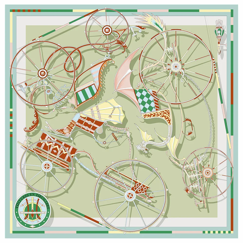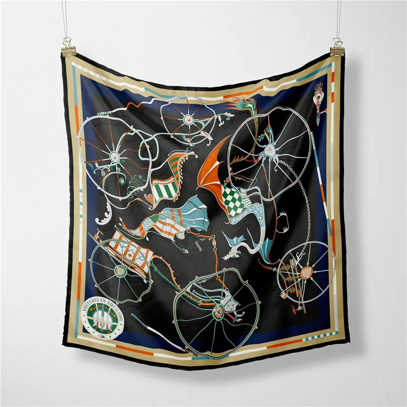 90cm New Wheels Brand Square Scarf Women Design Twill Silk Scarf Shawl Hijab Luxury Bandana Fashion Neckerchief Head Scarf  Read more