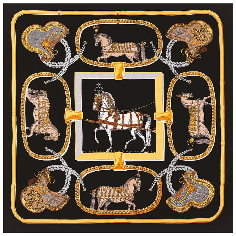 130cm New Design War-horse Brand Square Scarf Women 2023 Silk Scarf Fashion Shawl Bandana Kerchief Scarves For Ladies