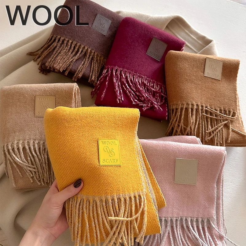 Winter Wool Scarf for Women Long Warm Cashmere Shawl Wrap Solid Lady Scarves Hijab Female Pashmina Bandana Head Scarves Stole