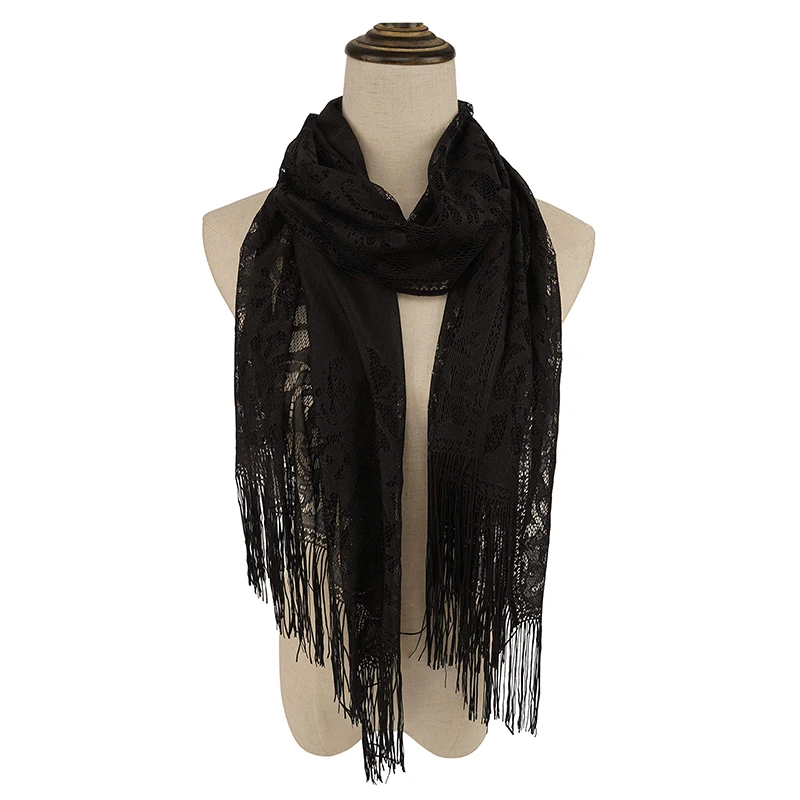 RUNMEI Black Yellow Pink Color Floral Lace Scarf Tassel Fringe Shawl Wrap Flower Headscarf Muslim Hijabs scarfs Women Ladies