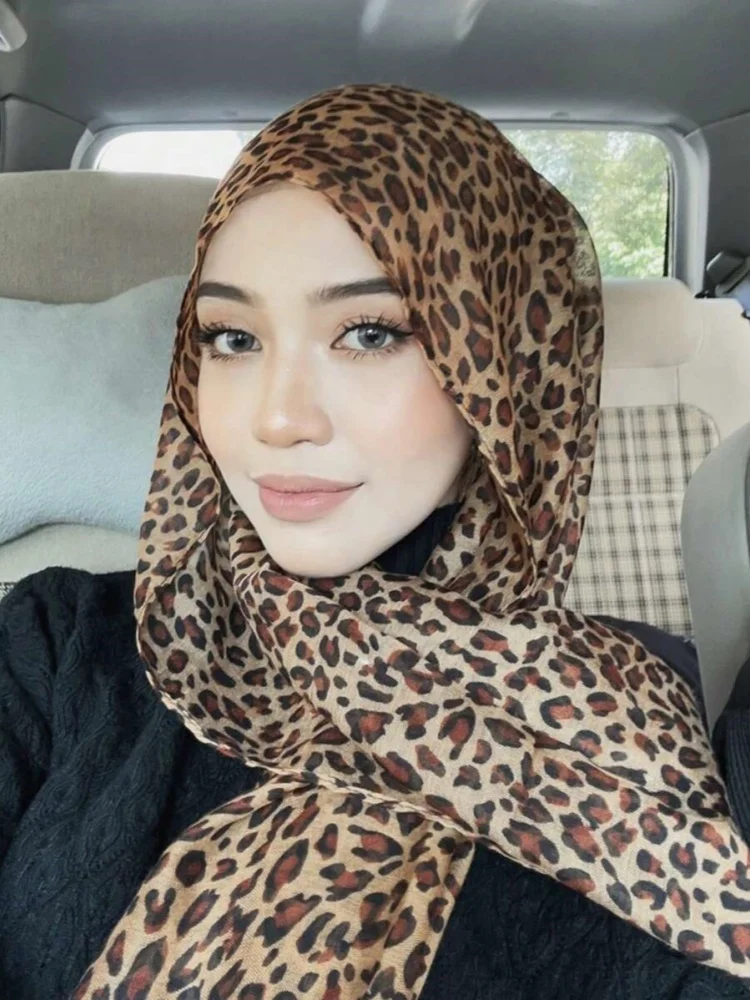 1pc Women Chiffon Classic Leopard Print Scarf Fashionable Comfortable Breathable Shawl Lightweight Headscarf Muslim HIjab Wraps  Read more