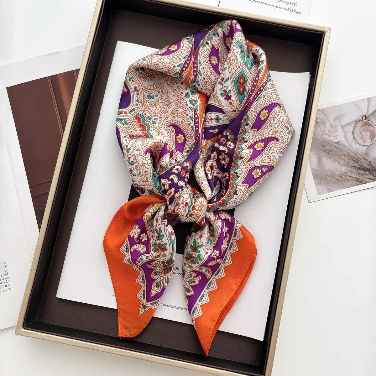 Luxury 70cm Square Scarf for Women Soft Satin Neckerchief Scarf Elegant Ladies Bag Ribbon Headband Bandana Shawl For Daily Wear