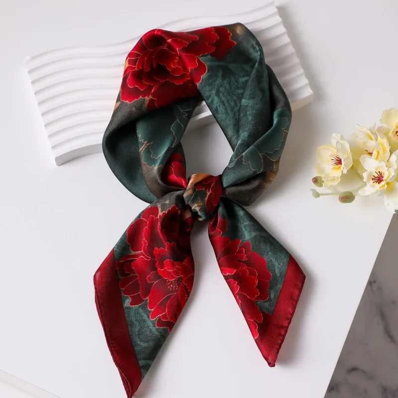 Women's Imitation Silk Square Scarf Small Satin Print Wrap Foulard Handkerchief Bandana Neck Hair Skinny Tie Scarves Shawls