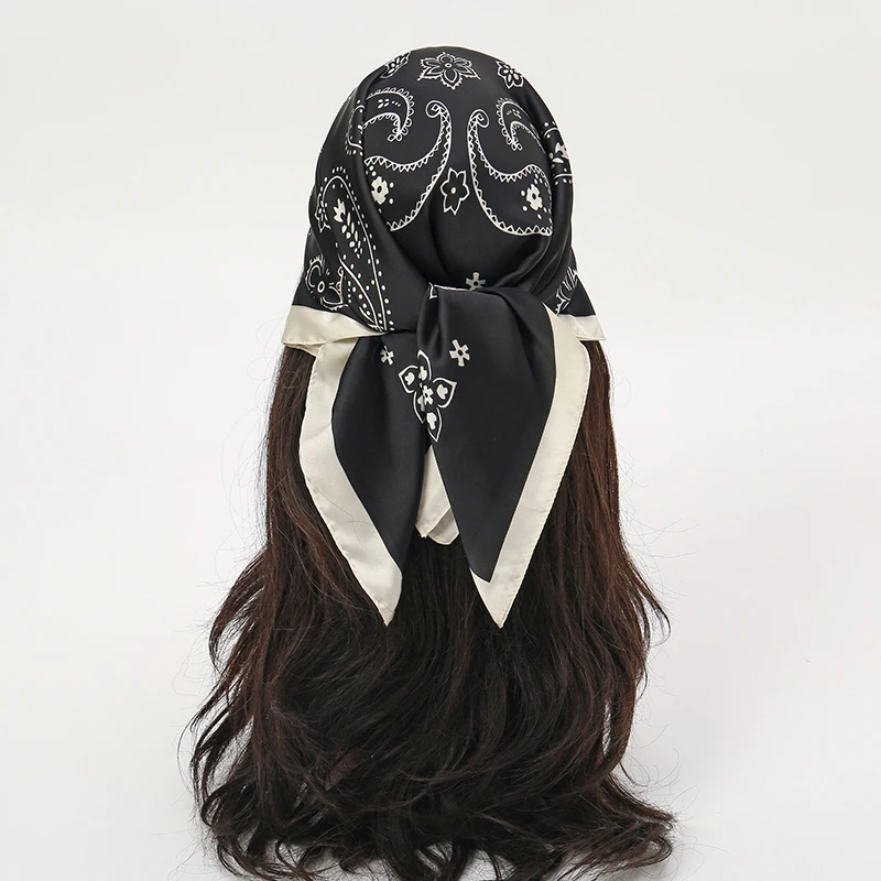 90*90cm Elegant Print Silk Scarf Satin Square Scarf Women Hijab Neckerchief Shawl Wraps Headband Hair Accessories Bandana