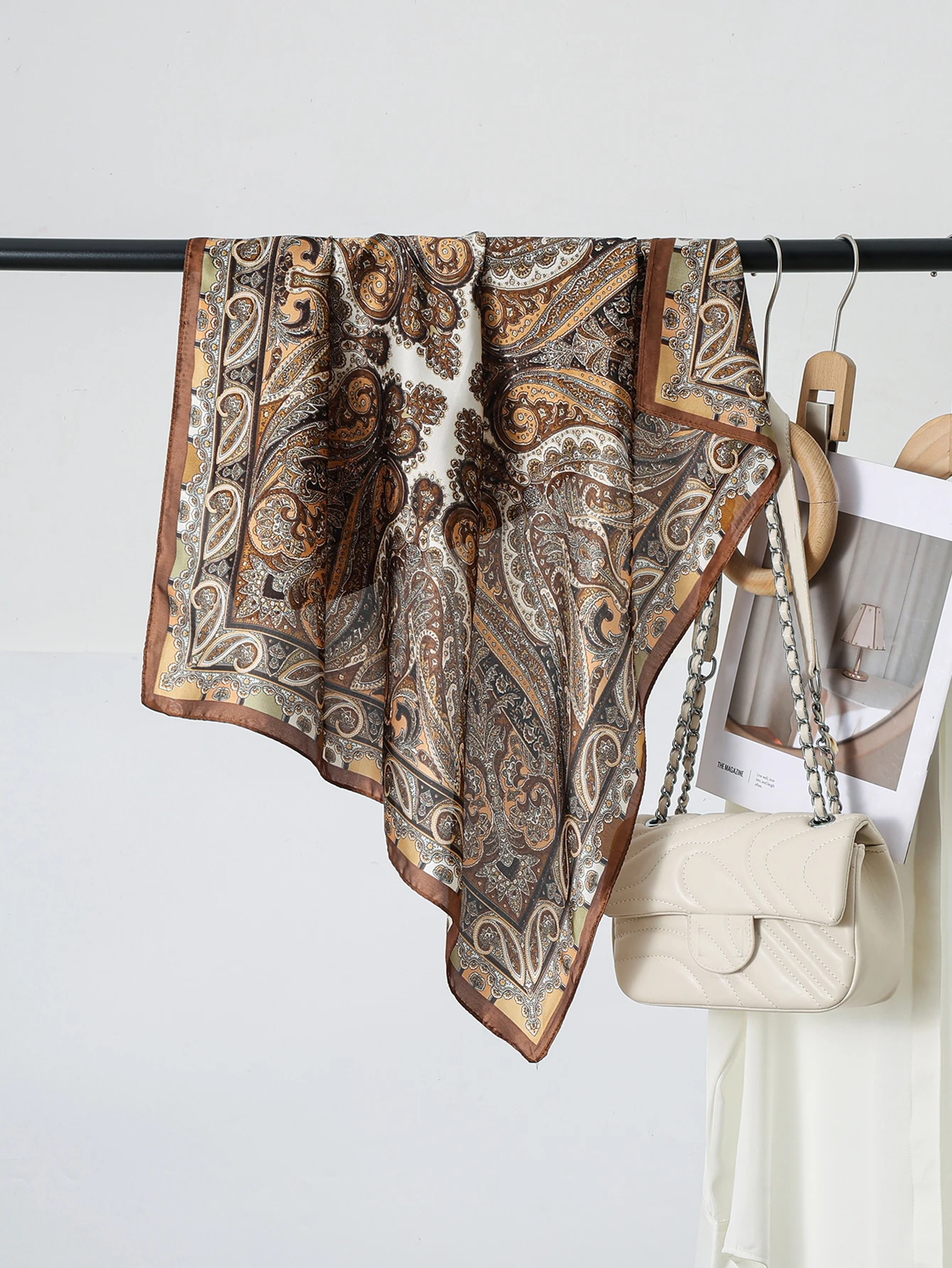 70cm Fashion Square Silk Scarf Satin Cashew Flower Print Small Neck Scarf Women Headscarf Kerchief Bandana Shawl Accessories