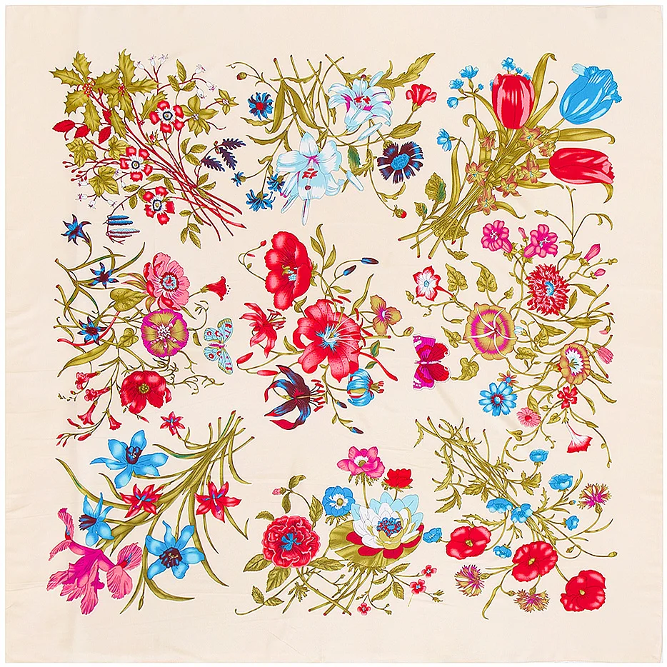 100*100cm Twill Silk Scarf Luxury Women Flower Print Square Scarves Shawl Lady Kerchief Bandana Hijab Female Foulard Muffler