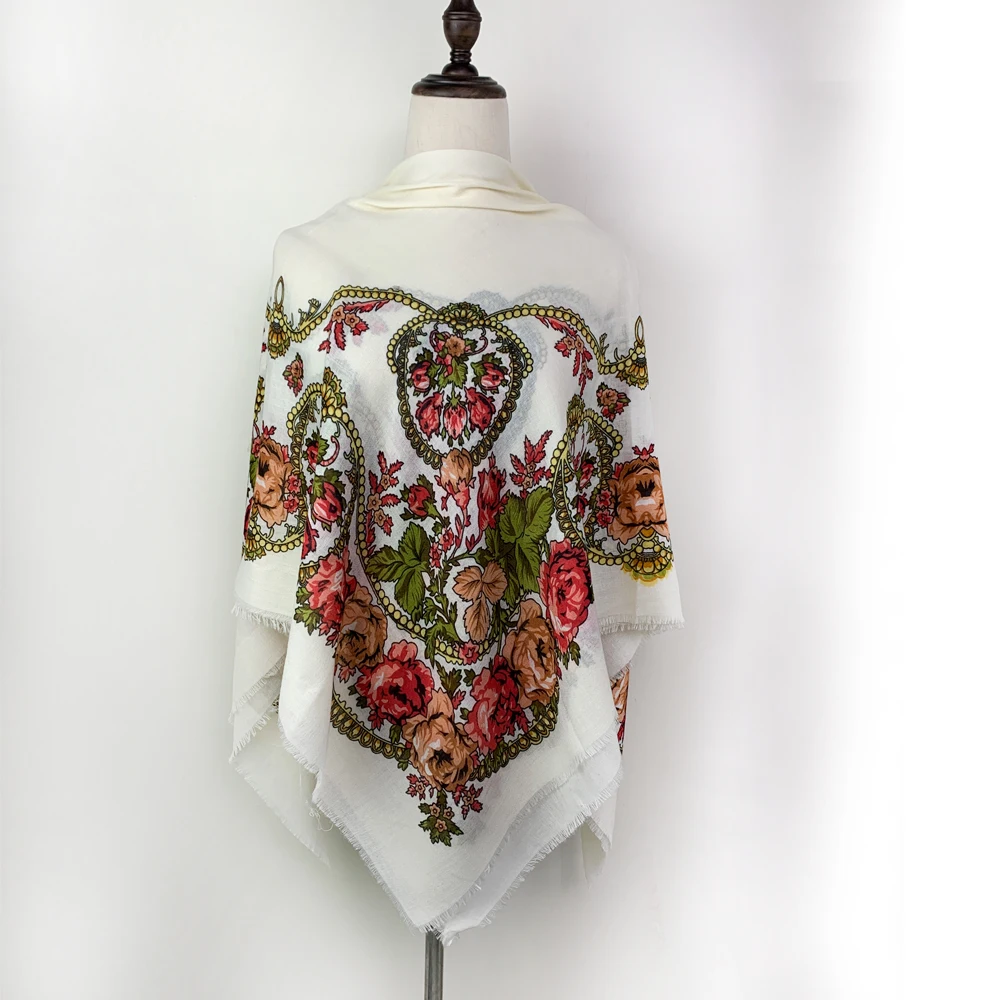 120*120cm Breathable Thin Luxury Floral Russian Square Scarf Women Bandana Foulard Femme Ethnic Travel Sunshade Beach Shawls