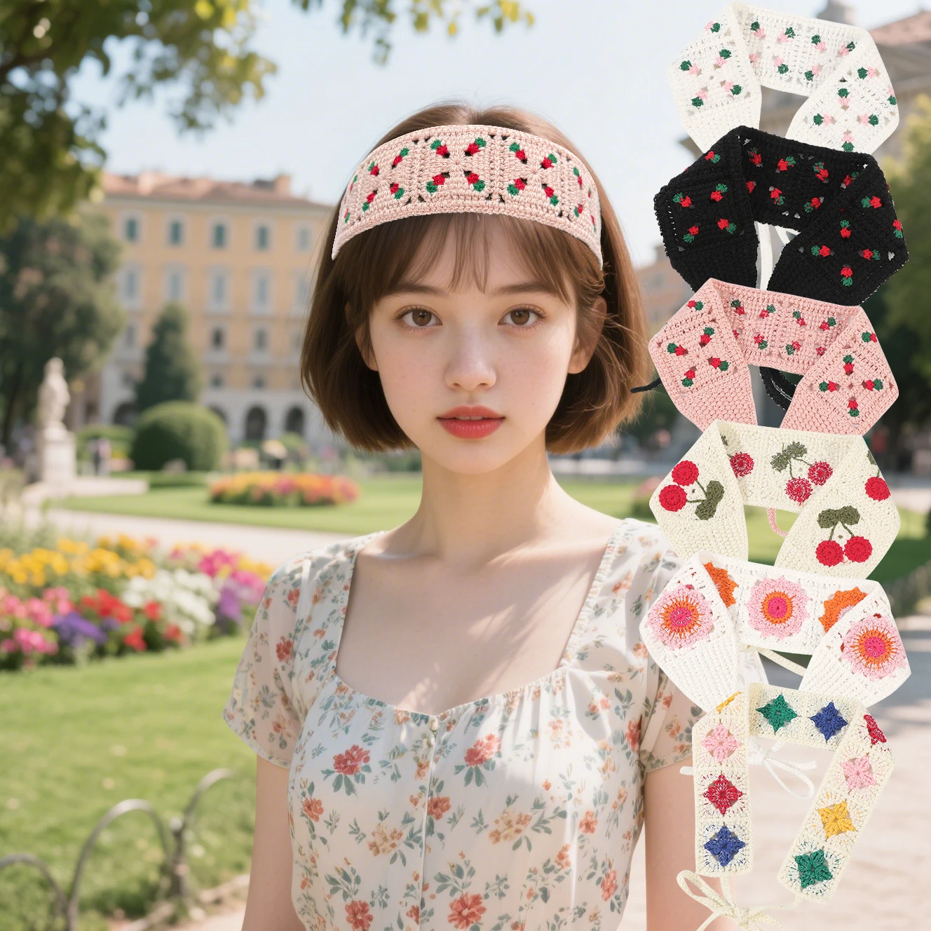 Color Flower Hairband Thick Knit Hair Scarf Women Summer Y2k Headband Crochet Hair Bands for Girls Baby Hair Accessories Bandana