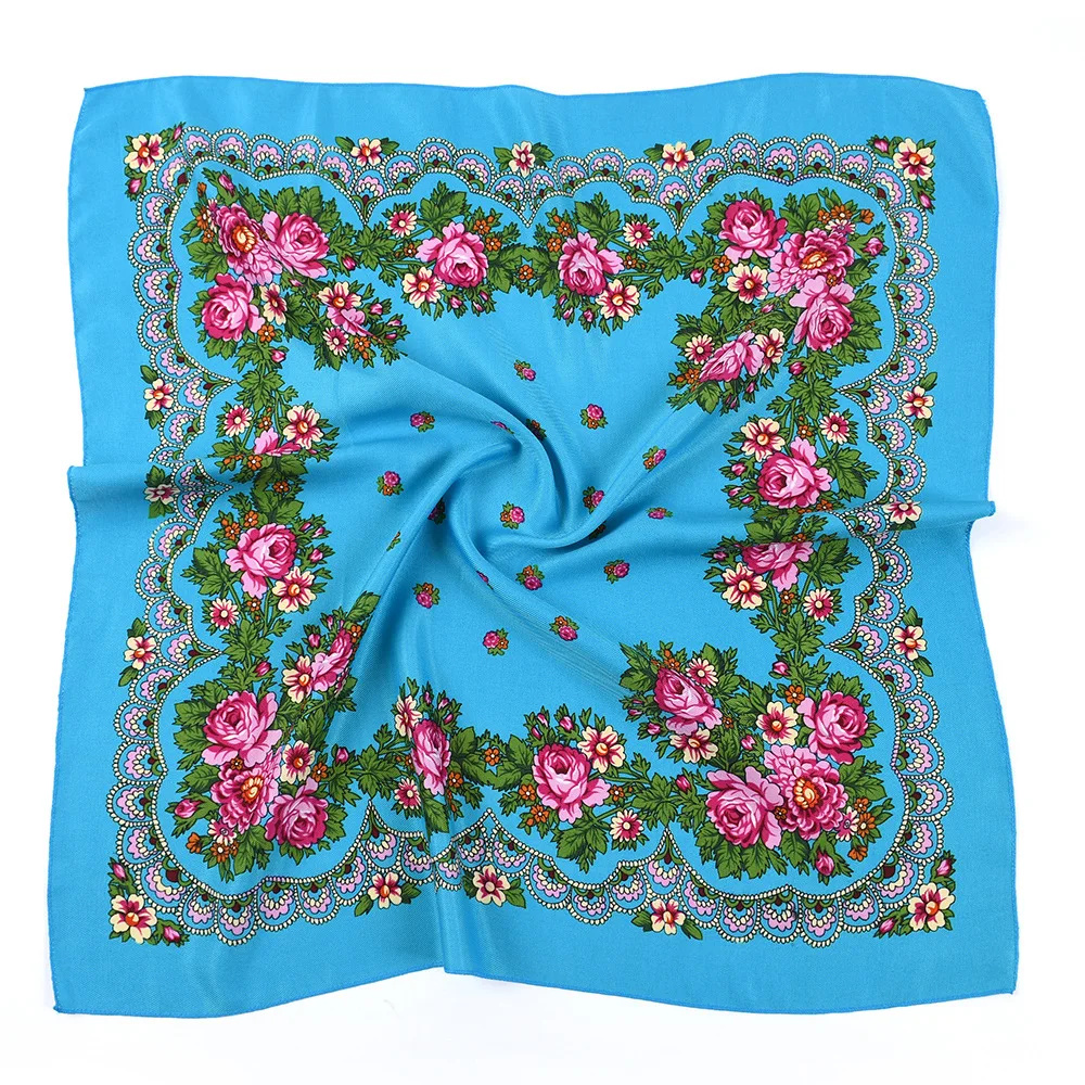 70*70cm Russian Square Scarf Luxury Women Flower Print Bandana Female Headband Scarves Handkerchief Babushka Head Wraps