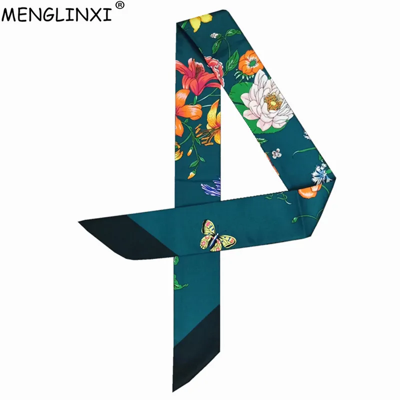 2024 New Skinny Scarf Butterfly Floral Printing Silk Scarf For Women Luxury Brand Foulard Fashion Ladies Bag Scarf Head Scarves  Read more