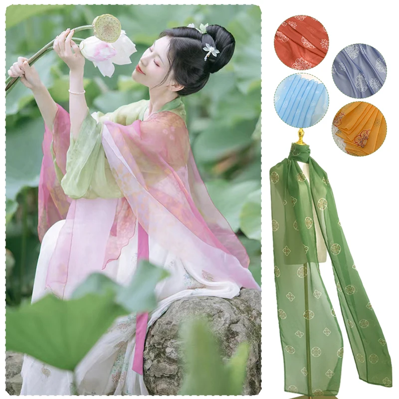 Flower Chiffon Ribbon Traditional Chinese Ancient Dance Costume Opera Streamer Hanfu Long Shawl Dance Flowing Silk Scarf  Read more