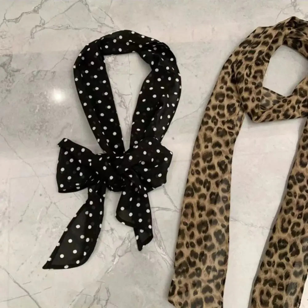 Fashion 195*4cm Leopard Scarf Leopard Print Polka Dot Long Neck scarf Long Narrow Women Belt Women Headband
