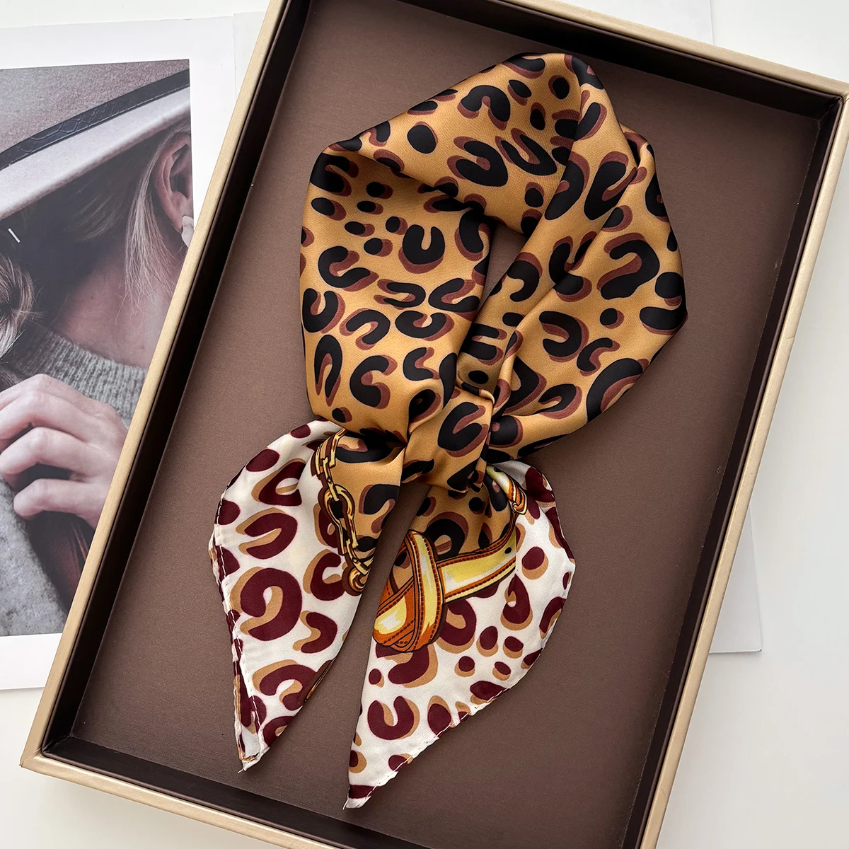 Luxury Square Silk Scarf For Women Leopard Print Shawl Warps Elegant Neckerchief Bandanas Hijab Soft Stain Scarf For Daily Wear