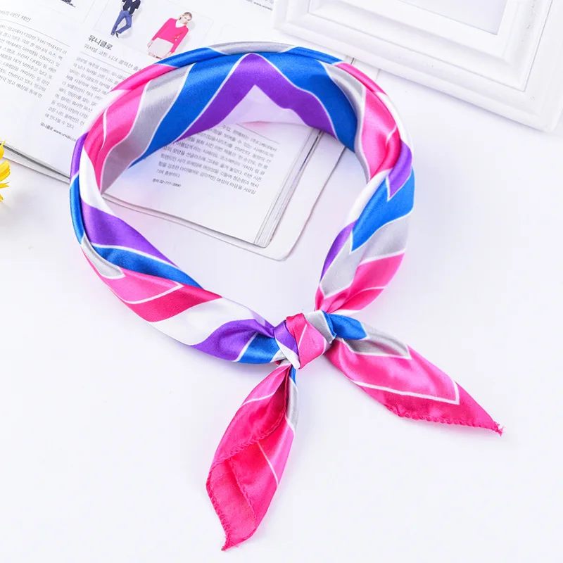 Silk Scarf Women 50*50 Small Soft Squares Decorative Multifunctional Head Scarf Multicolor Stripe Print Kerchief Neck Shawl Wrap  Read more