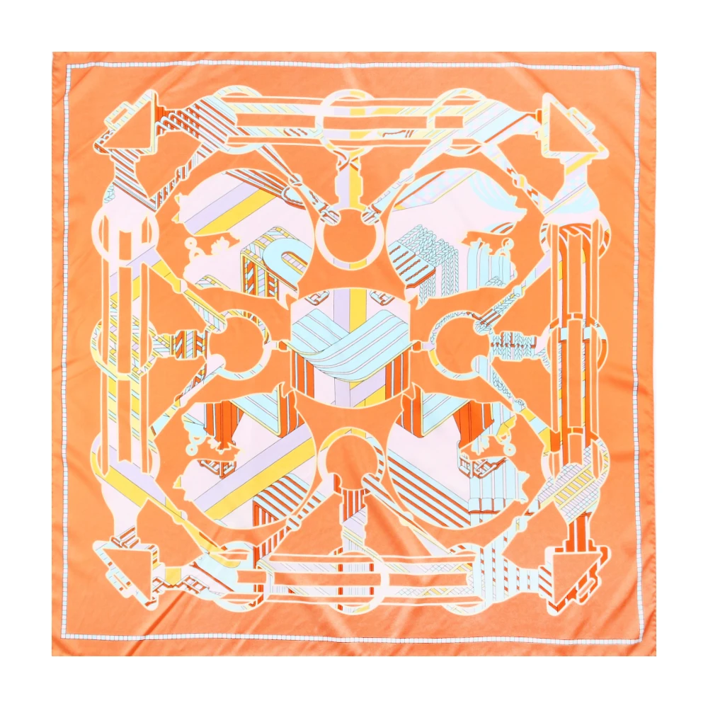 Silk Scarf Women Carriage Wheel Print Square Scarves Head Echarpes Silk Foulards Femme Wraps Beach Shawl Bandana Lady Hijab 90CM  Read more
