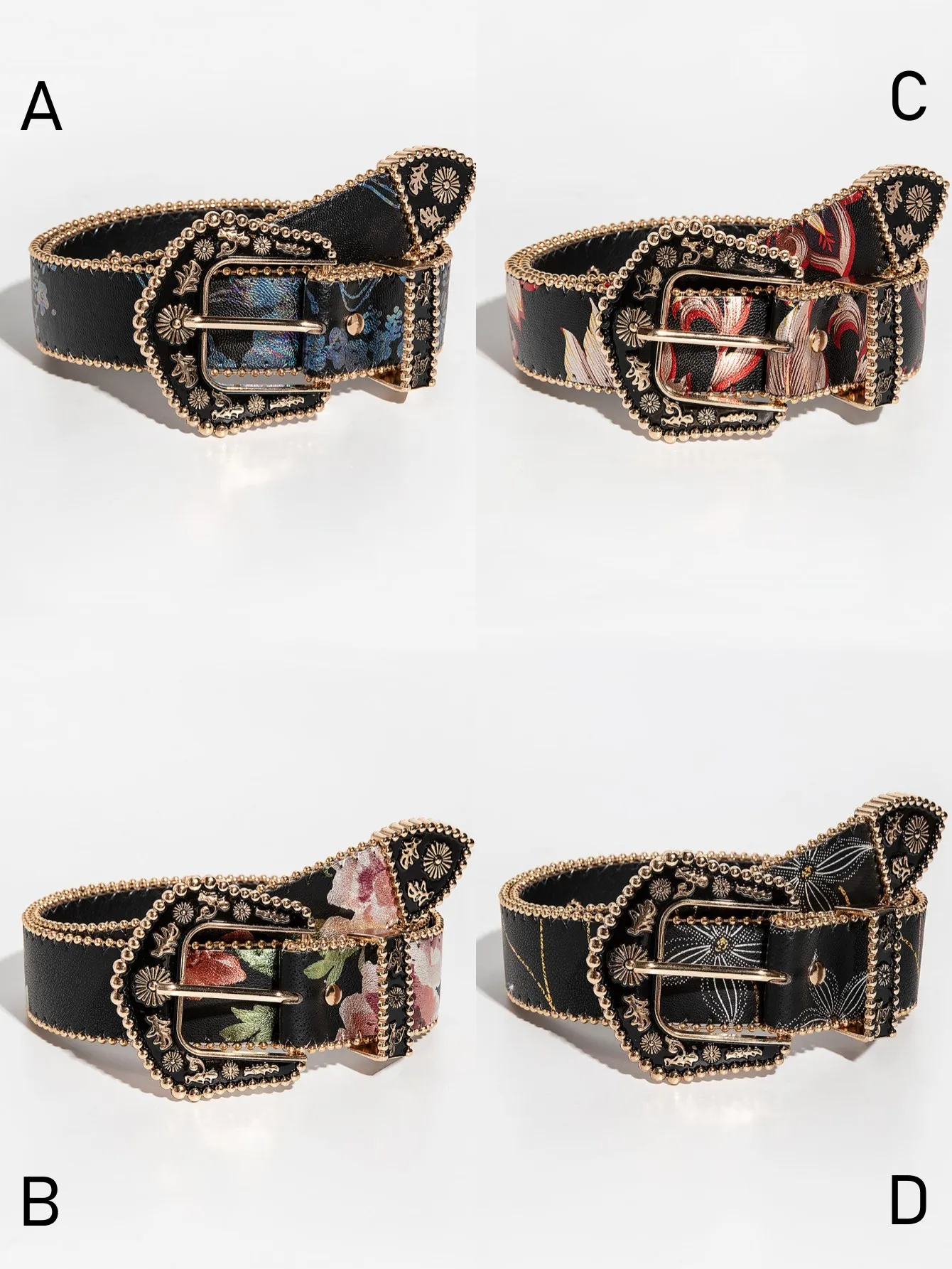 Men & Women-Western-Cowboy-PU Leather-Belts - Vintage horse Belt Floral Engraved Buckle Belt for Jeans