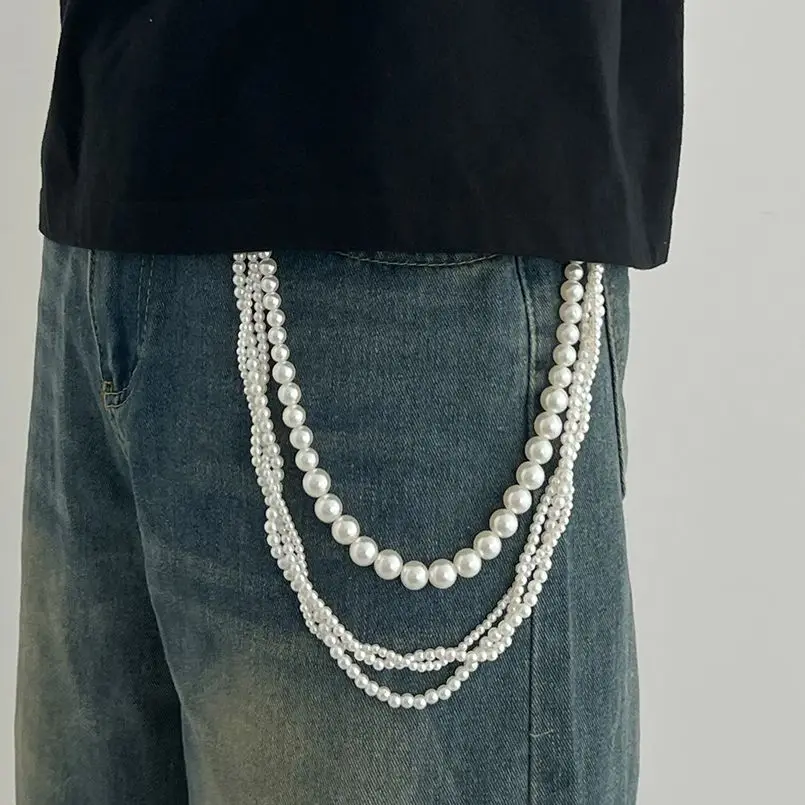 SHIXIN Trendy Multi Layer Imitation Pearl Belt Pants Chain Men Women Hip Hop Beaded Jeans Waist Chain Unisex Jewelry Accessories