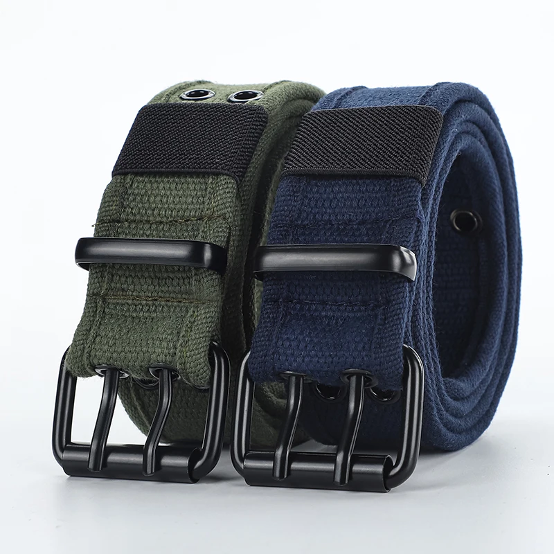Men's and women's double button canvas waistband, work style, full hole needle buckle belt, sturdy and durable jeans for student
