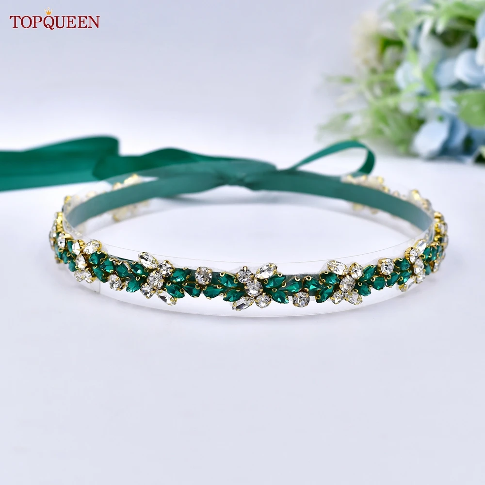 TOPQUEEN Simple Wedding Belt Green Rhinestone Belt Bridal Dress Decoration Women's Accessories S437 KL