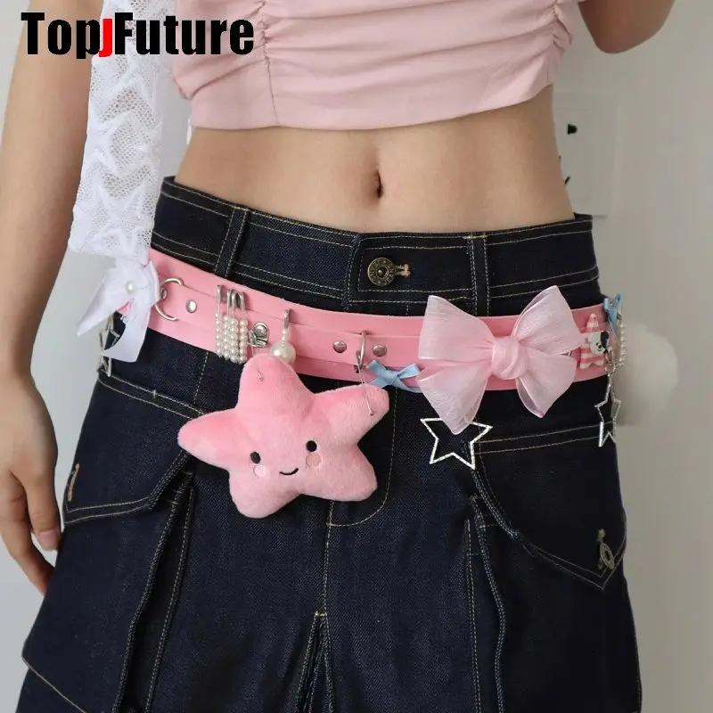 Women HAND MAKE Gothic Lolita Punk Harajuku full of pendants belt princess Y2K girl Millennium Spicy Girl heart star bow belt