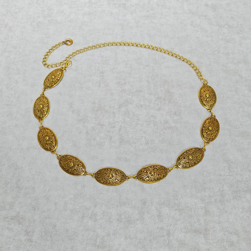 Fashion Gold Chain Belt Female Waist Adjustable Desinger Belts For Women High Quality Luxury Flower Punk Metal Dress Waistband