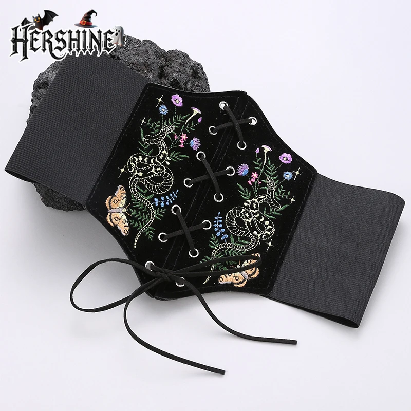 HERSHINE 1 piece women's fashion retro animal embroidery velvet waist belt with adjustable gothic style Halloween cosplay