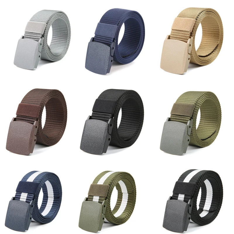 8 Colors Men Female Belts Military Nylon Adjustable Belt Outdoor Travel Tactical Waist Belt with Plastic Buckle for Pants 120cm