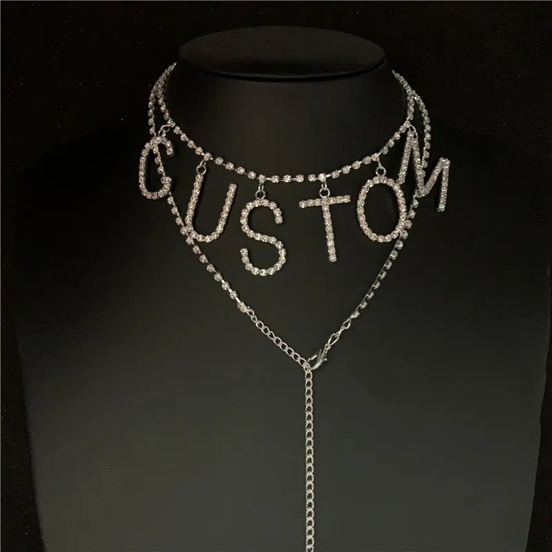 Dropship CUSTOM DIY Rhinestone Letter Necklace Belt For Women GIRLS Chain Custom Word Crystal Pendant Body Jewelry Party